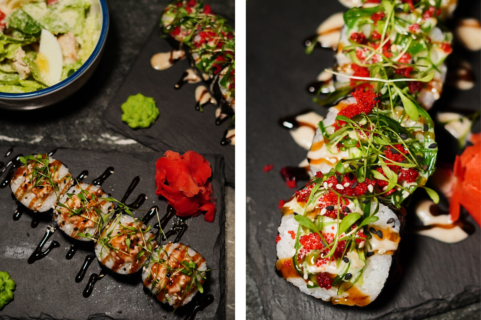 Каждую неделю — новое меню: роллы, поке, горячие блюда с морепродуктами, супы и десерты. Среди хитов — соба с морепродуктами в соусе терияки, рулет из семги с цветной капустой, теплый ролл с лососем и снежным крабом, сливочный суп с лососем и том-ям. К обеду можно добавить напиток — чай, морс или бокал игристого. А еще — завести карту ланчей: каждый седьмой обед по ней бесплатный.