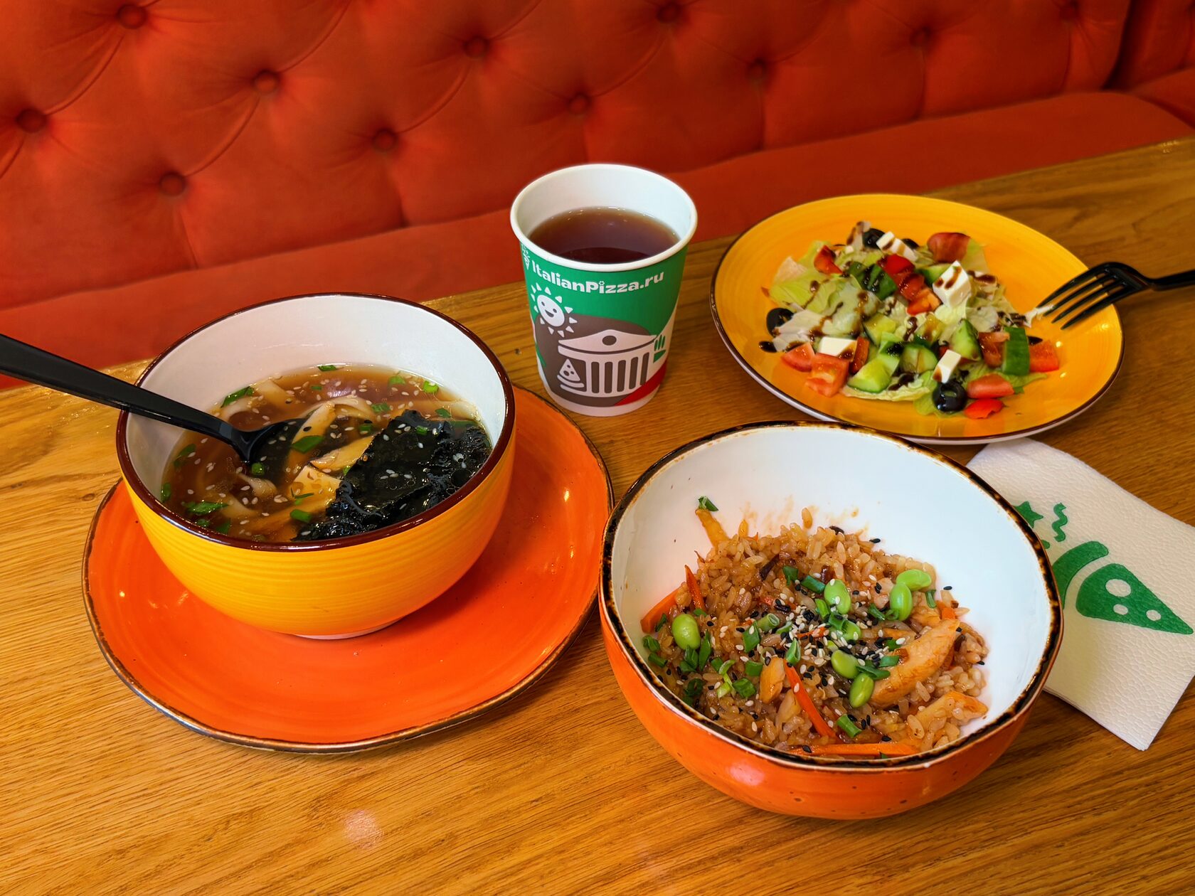 Сытные и разнообразные бизнес-ланчи можно заказать доставкой прямо до офиса или зайти в одну из пиццерий. Большой выбор блюд: салаты, супы, вторые блюда, роллы и горячие напитки. Можно взять комбо или выбрать отдельные позиции из меню бизнес-ланчей. Наличие комбо уточняйте в конкретной пиццерии — меню может отличаться.