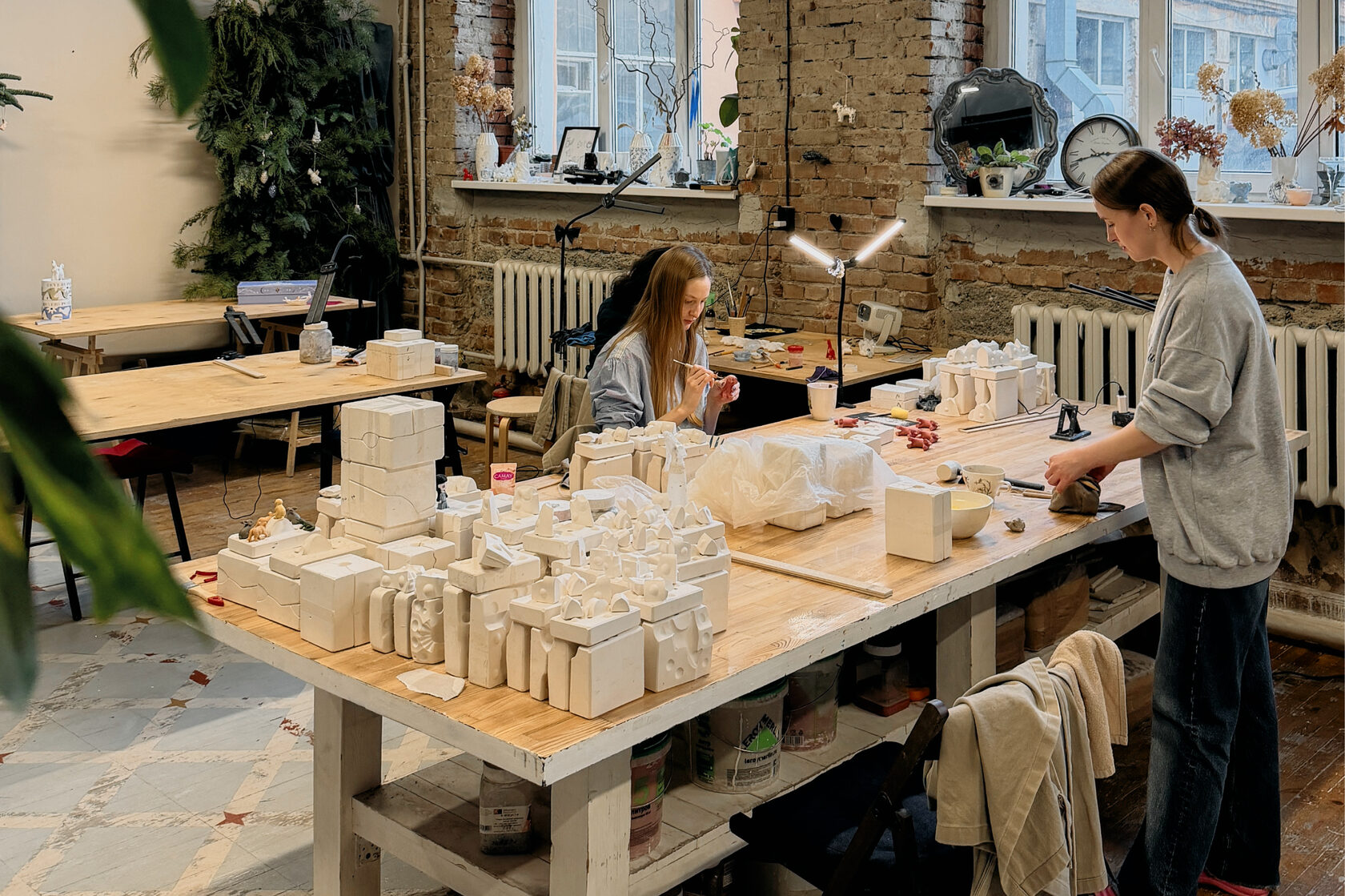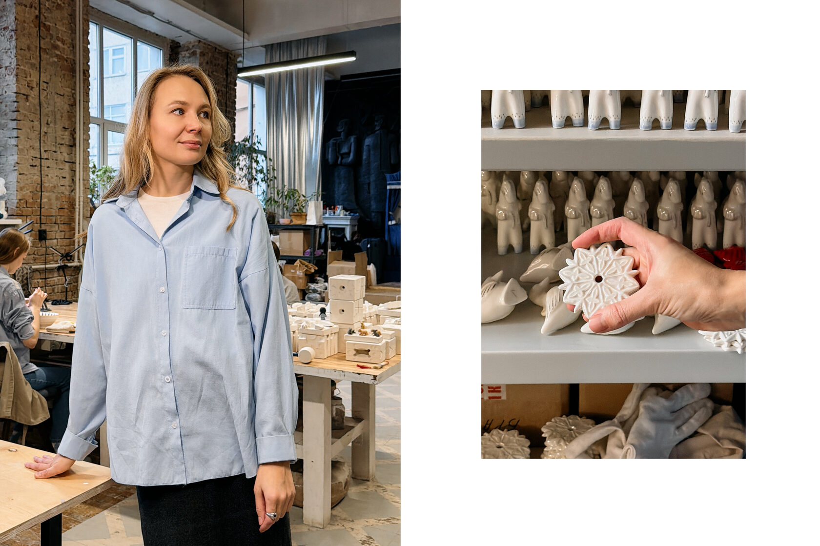 Наше основное направление — елочные игрушки. Все идет из детства: в моей семье принято передавать игрушки по наследству, доставать их к Новому году из холодной кладовки — морозные, стеклянные, с узорами. Тогда казалось, что такие вещи невозможно сделать своими руками. Когда я начала заниматься керамикой, поняла: возможно все.