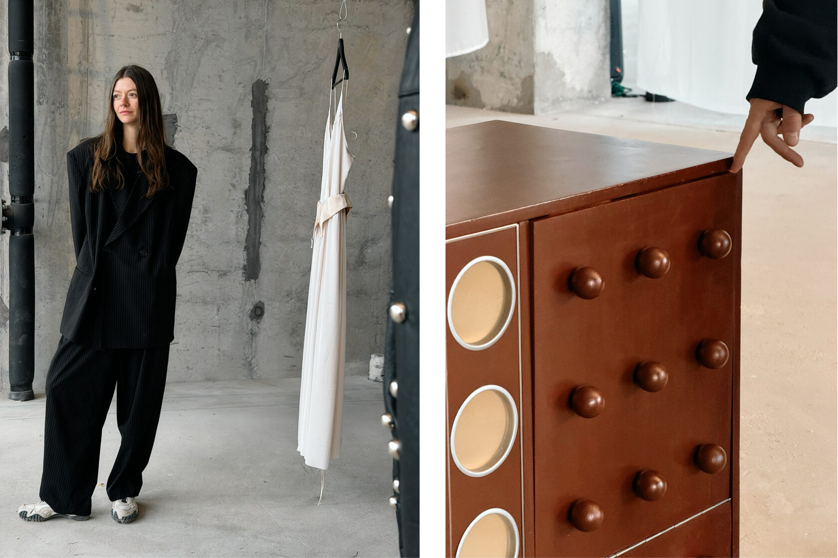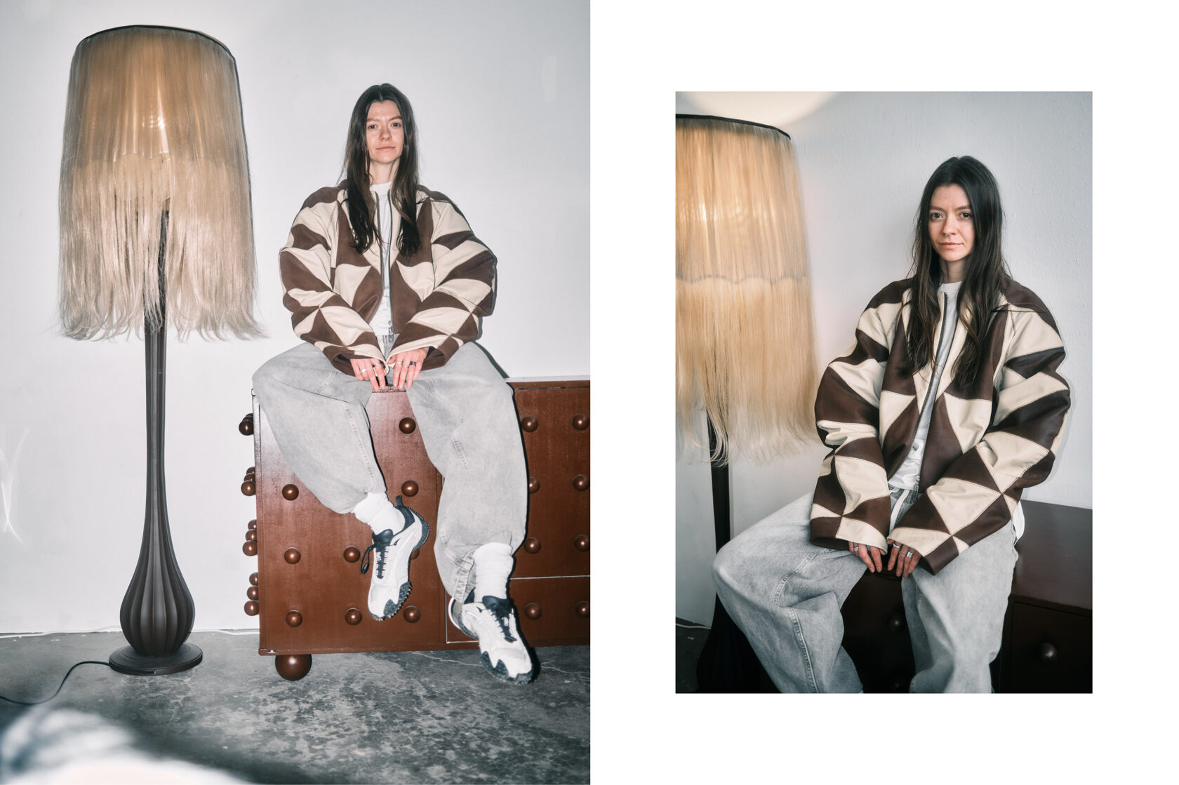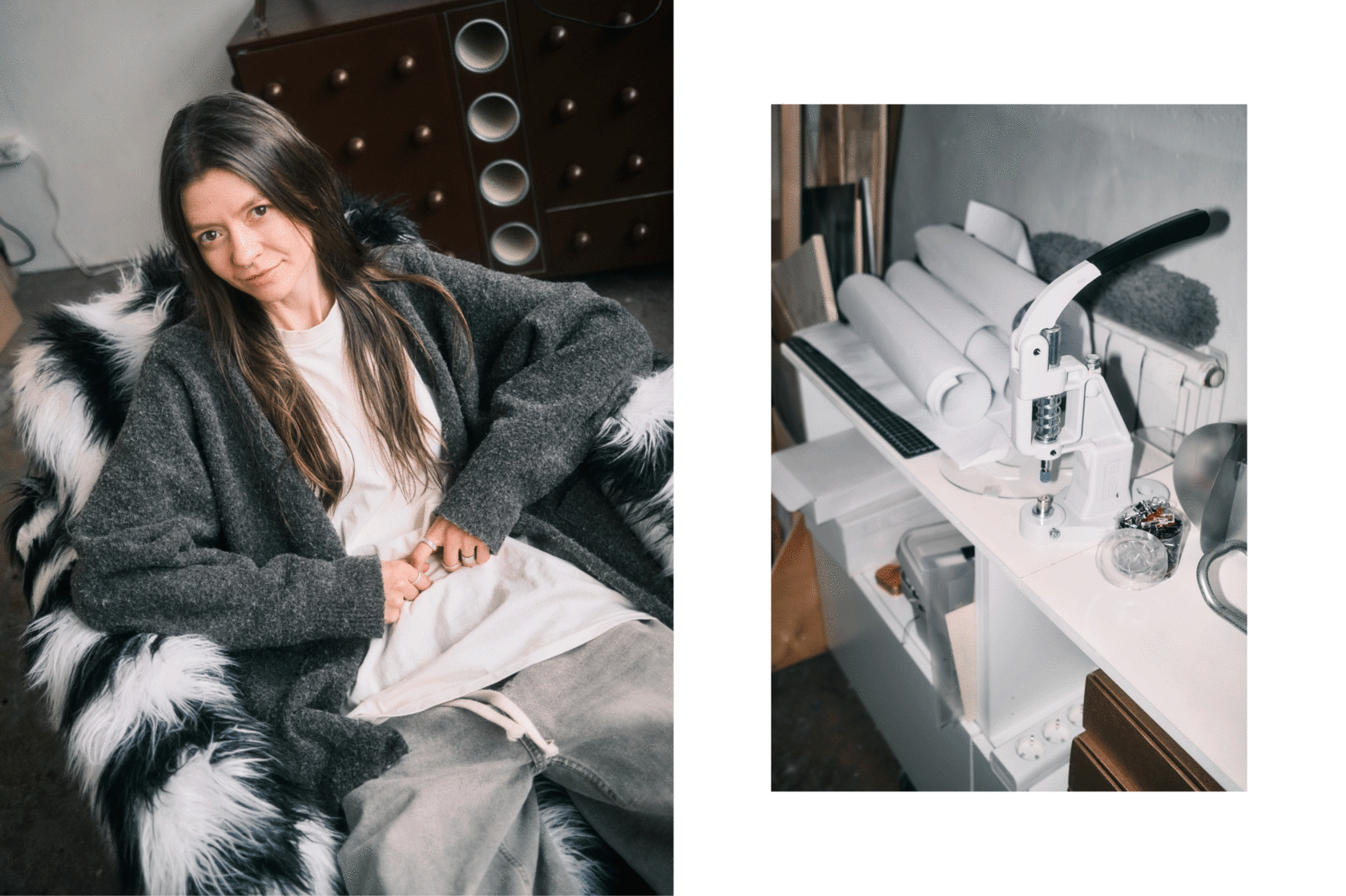 Сегодня в портфолио Тани — одежда, аксессуары и мебель, к которым смело можно добавить приставку «крейзи». Редакция Чойса приехала к ней в мастерскую и застала за работой над курткой из бывшего коровьего ковра — среди рулонов ткани, кожи и старых кресел, которые в другой жизни уже оказались бы на свалке.