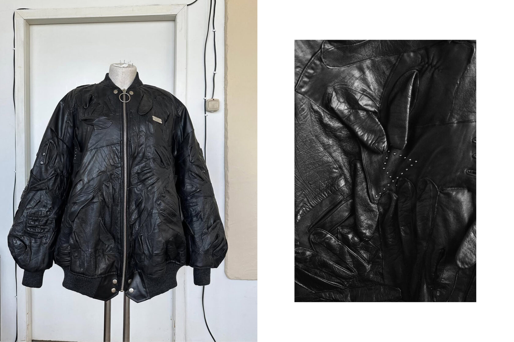 Еще одна легенда — бомбер из кожаных перчаток, на создание которого ушло четыре месяца, из которых три с половиной я потратила на сбор материала. В процессе мои эмоциональные качели носили меня от «это будет потрясающе» до «зачем я это придумала, это провал». Но это того стоило, и с него началась моя узнаваемость и профессиональный рост.