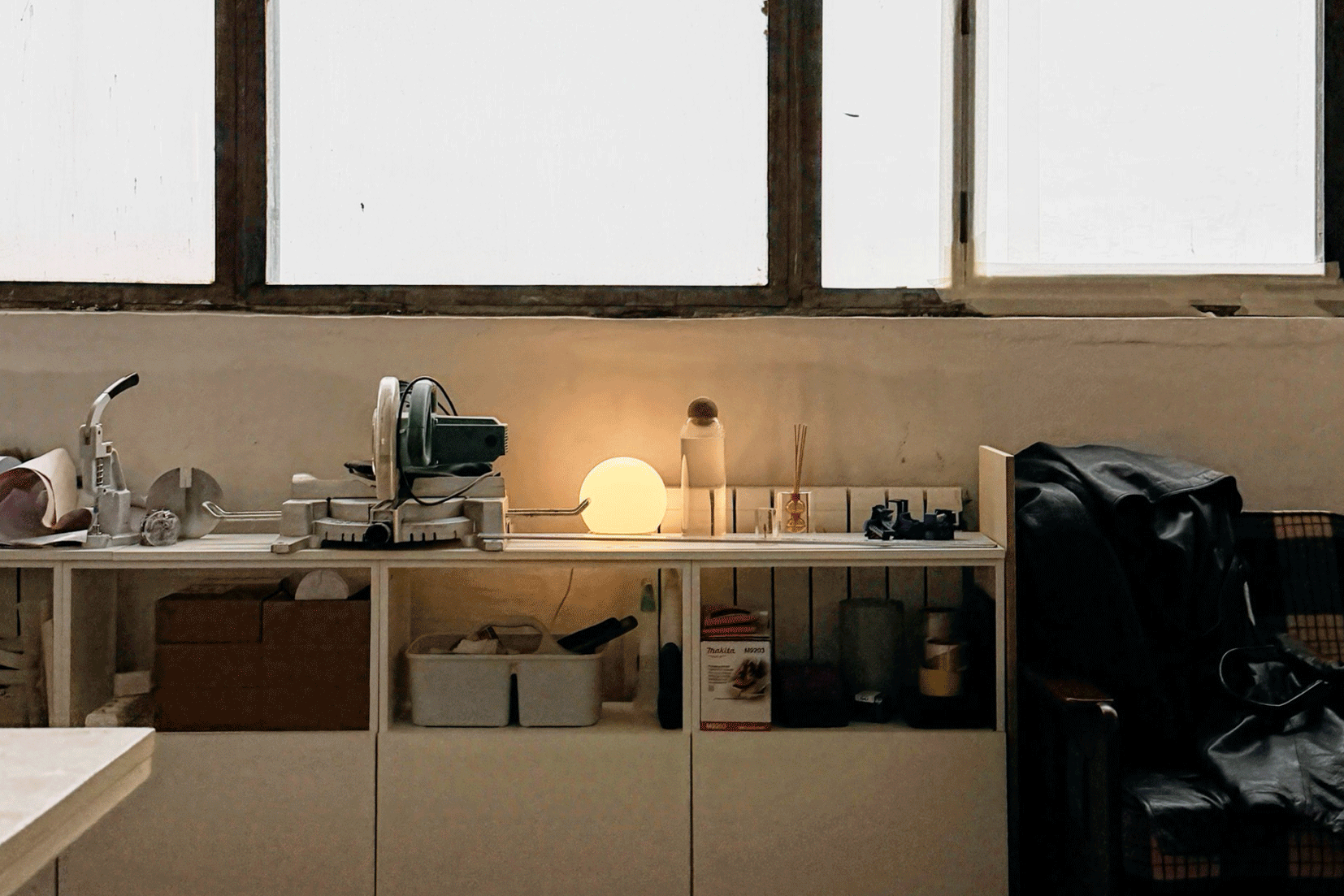 Я всегда мечтала о собственной мастерской, но пока работала в контенте, она мне не была нужна. Когда я начала заниматься апсайклом, пространство дома постепенно стало меняться. Дело было не в эскизах или швейной машинке — у меня их немного, и бытовая техника занимает совсем мало места. Основной сложностью оказались пыльные и шумные работы с деревом, а также запахи красок и растворителей. Так я арендовала крохотное помещение на бывшей фабрике, которое теперь стало пристанищем It’s not over yet.