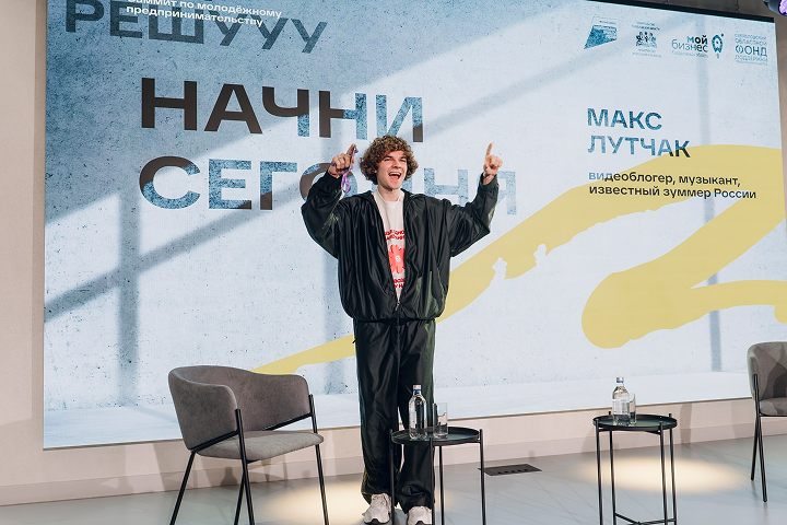 «Коллеги, утречко, связь-связь!» «Твой KPI на сегодня: глубокий вдох и литр капучинки», «Зачем мне работа? Мне достаточно зарплаты» — блогер и «главный зумер страны» Максим Лутчак (135,5 тыс. подписчиков в TikTok) выступил на лекции саммита молодежного предпринимательства «Сам решууу».