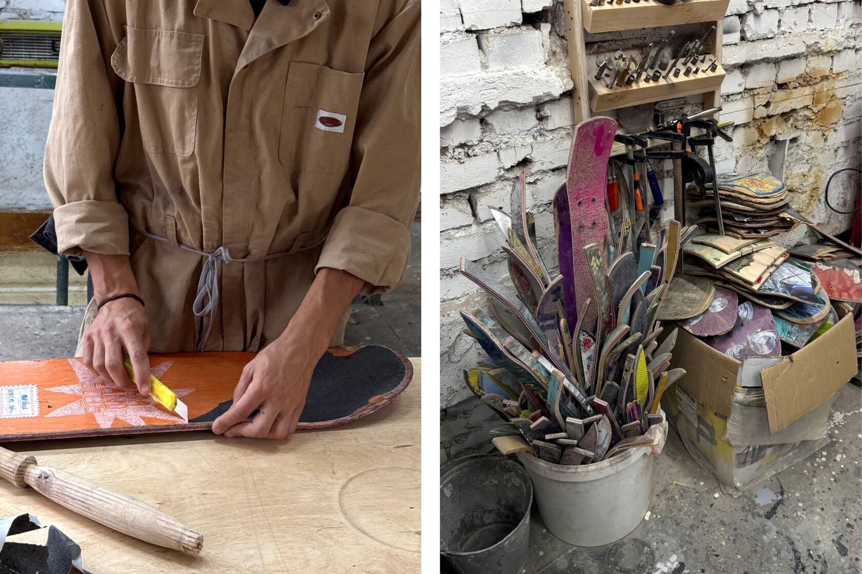 Ребята часто отдают мне свои сломанные деки. Думаю, это и благодарность, и уважение, и просто потому, что знают: я из этого сделаю что-то классное, а не просто в печь кину. Комьюнити у нас тесное, и у меня там есть какой-то вес, поэтому доски находят дорогу ко мне.