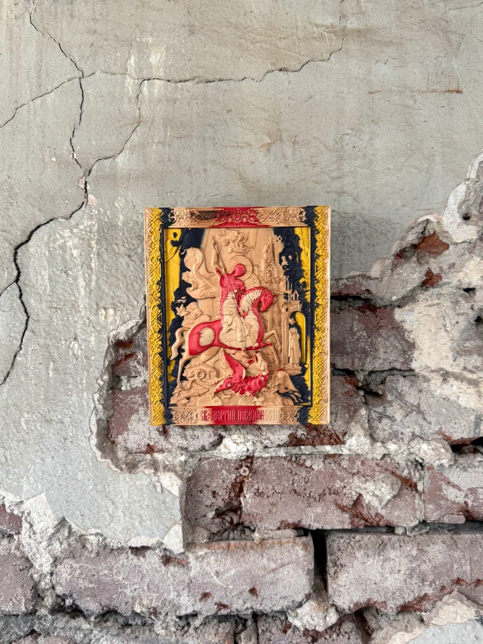 Изучаю эту тему, но религиозным человеком себя не называю. Для меня это скорее культурный взгляд, интерес к истории. Я много путешествую по России и изучаю в разных городах храмы, архитектуру, смотрю на то, как живут люди… В Тобольске, например, я увидел иконопись, Кремль, познакомился с мастерами, которые кропотливо пишут иконы. И тогда подумал: а почему бы не объединить мой материал и историю своей культуры? Так появилась первая икона.