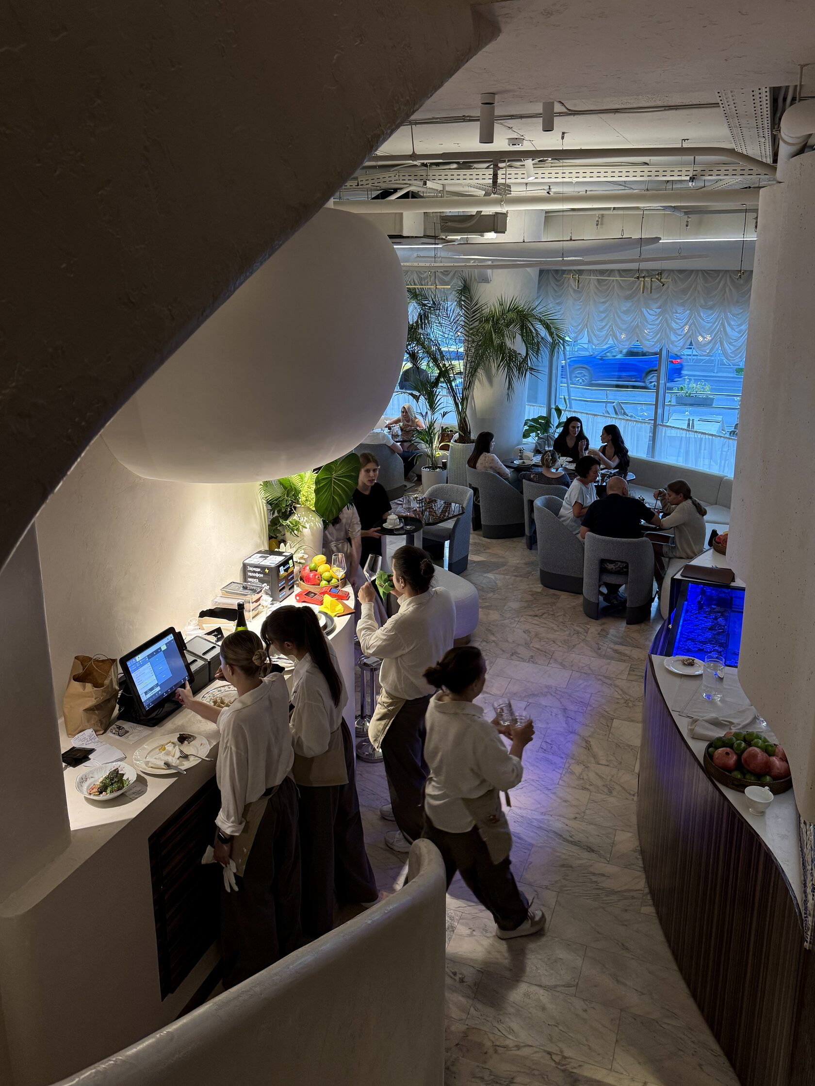 Для сочинского вайба выбрали улицу Малышева. Из панорамных окон, к сожалению, не видно моря или гор, только оживленная улица.