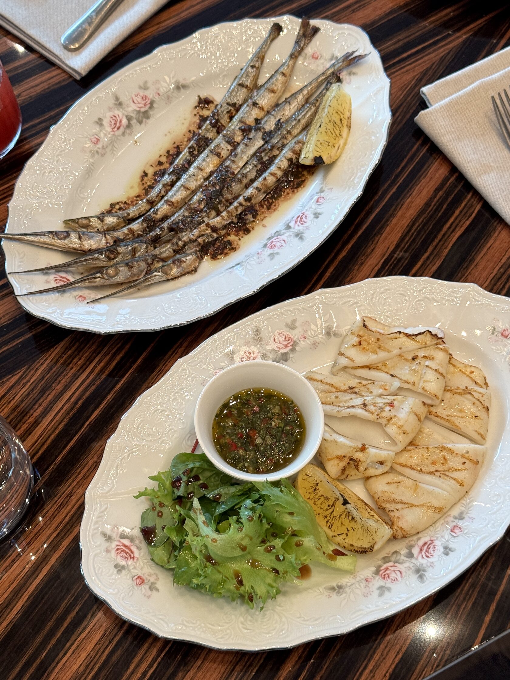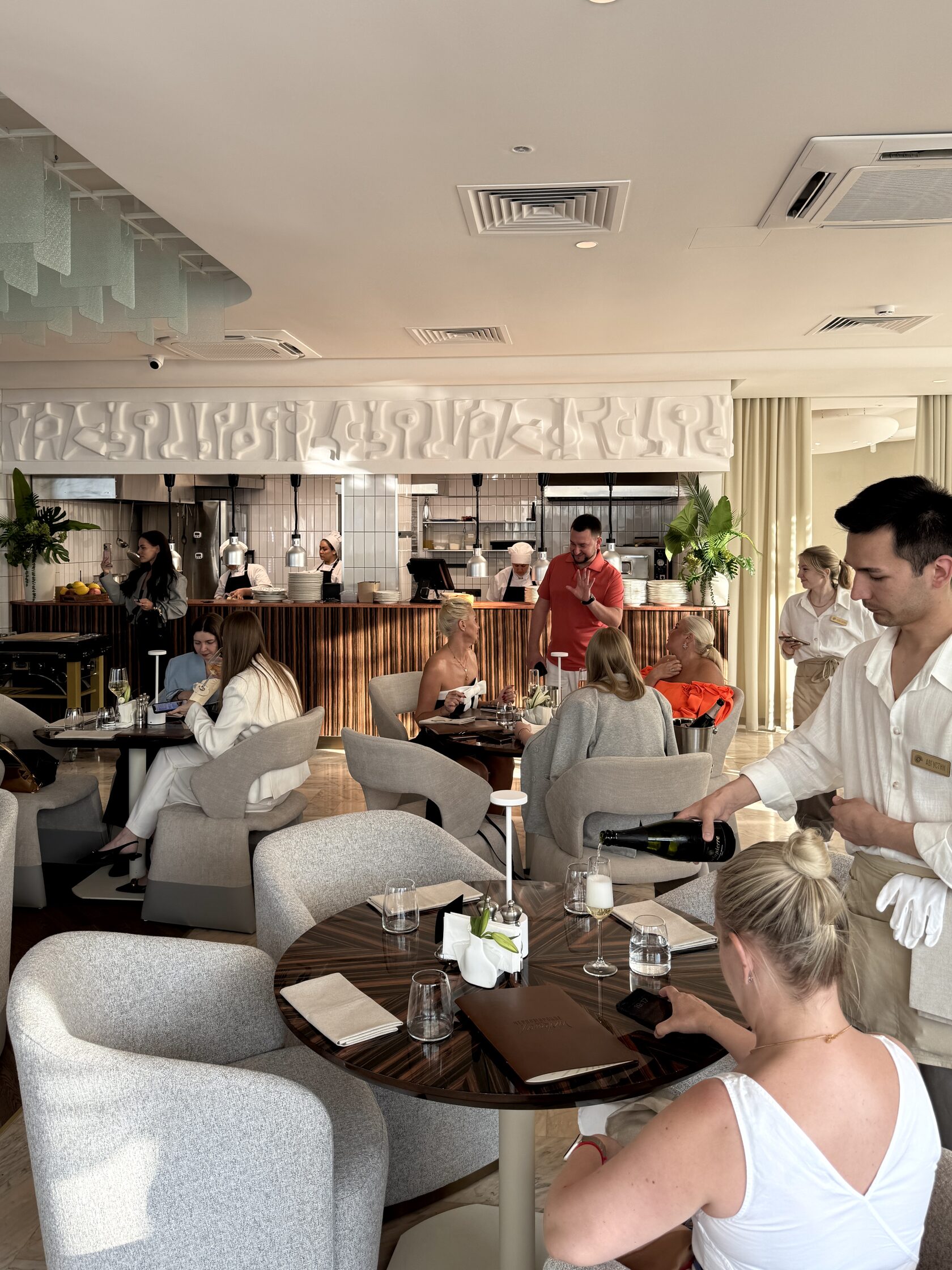 В меню ресторана «Черноморские истории» — устрицы и магаданские креветки на льду, тартар из сибаса с муссом тахини и тартар из говядины с мозговой костью, сливочная уха из трех видов рыб с красной икрой и харчо с говяжьей грудинкой, а также кебабы, шашлыки, хинкали, хачапури и много рыбы (редкие для Екатеринбурга крылья ската, черноморская барабулька, луфарь и сарган). Деян отмечает, что в топе продаж — барабулька.