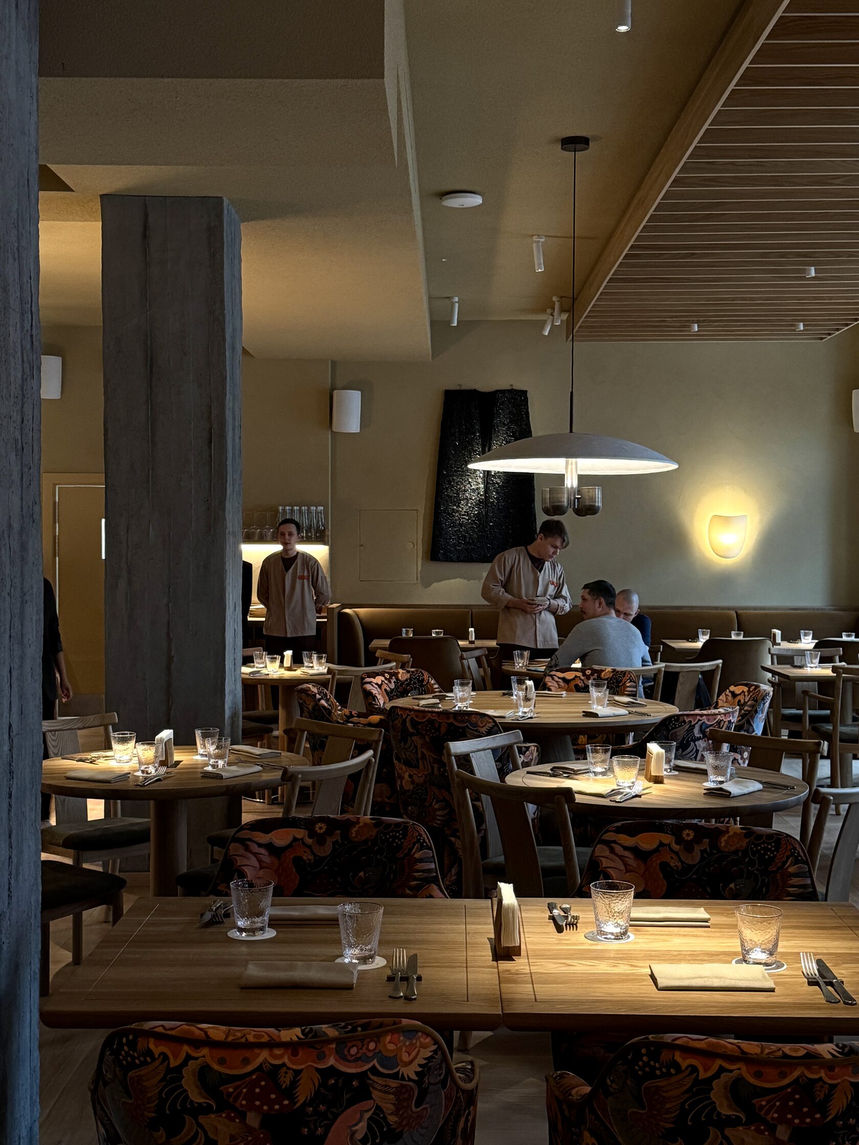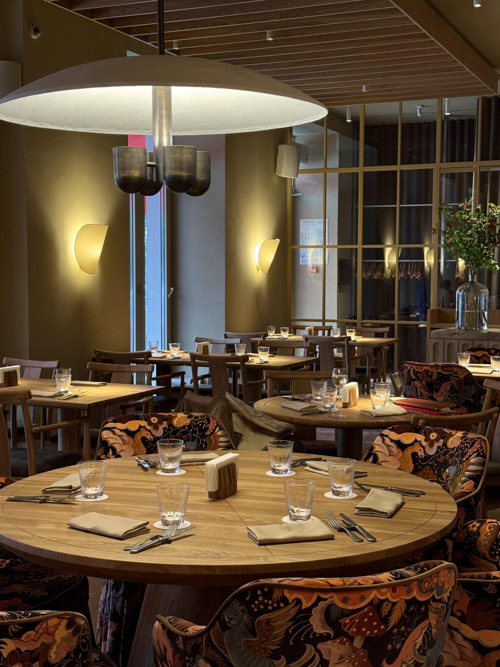 Интерьер ресторана разработала Юлия Ионова (винный бар Sekta, ресторан «Шави Ломи», Luna Lounge, французское бистро «Мимоза» и др.).