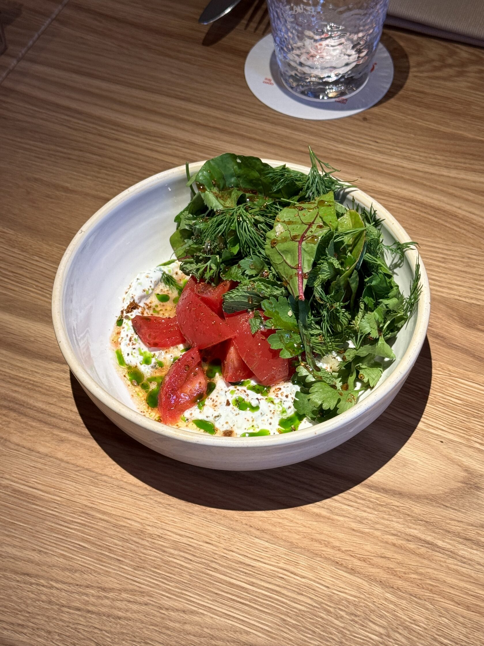 Салат со сладкими томатами, соленым лимоном, наршарабом и дзадзыки — 690 ₽