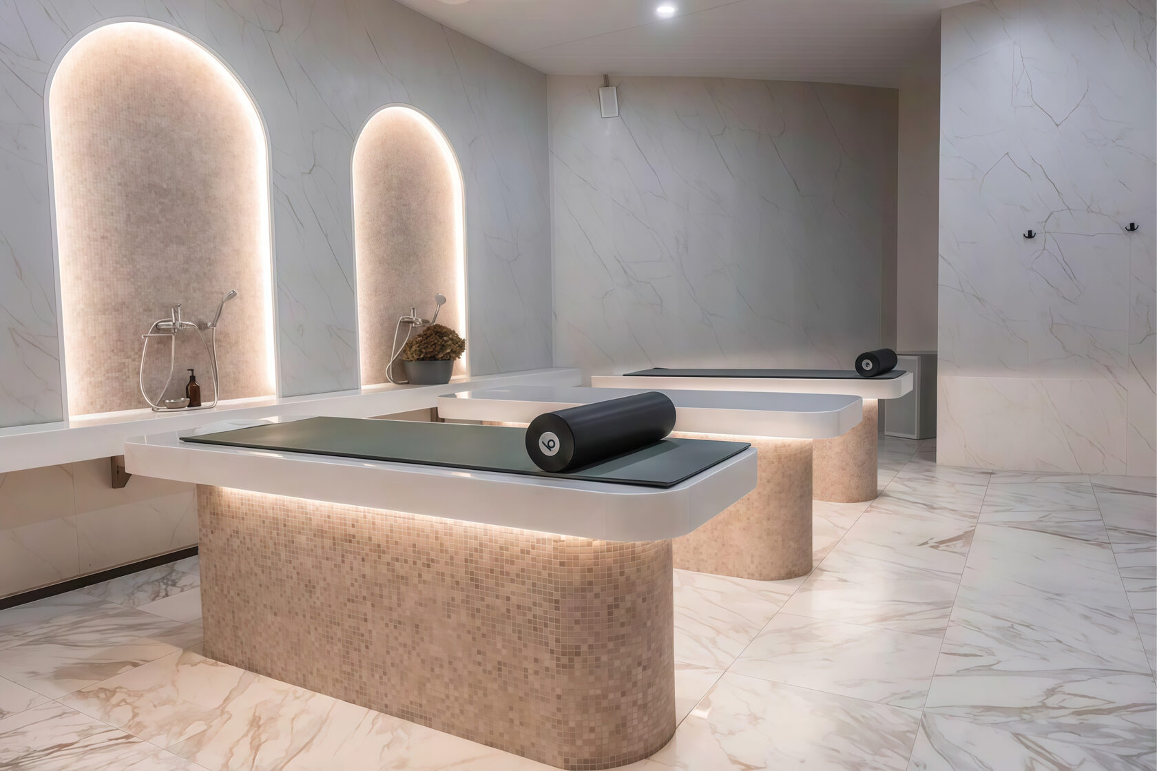 После — можно пройти в ресторан и чем-то угоститься, или пройти сразу в мойку и парилку. В мойке есть пространство, где собственно моешься, скрабишься. Есть хамам, прохладный бассейн и три бочки с водой — ледяной, чуть потеплее и как «парное молоко». Сразу представляется момент из сказки «Конёк-Горбунок», где Иван-дурачок прыгает в молоко, потом в кипяток и в холодную воду, а потом становится писаным красавцем. Также можно дополнительно заказать индивидуальное парение, массаж и другие косметологические процедуры.