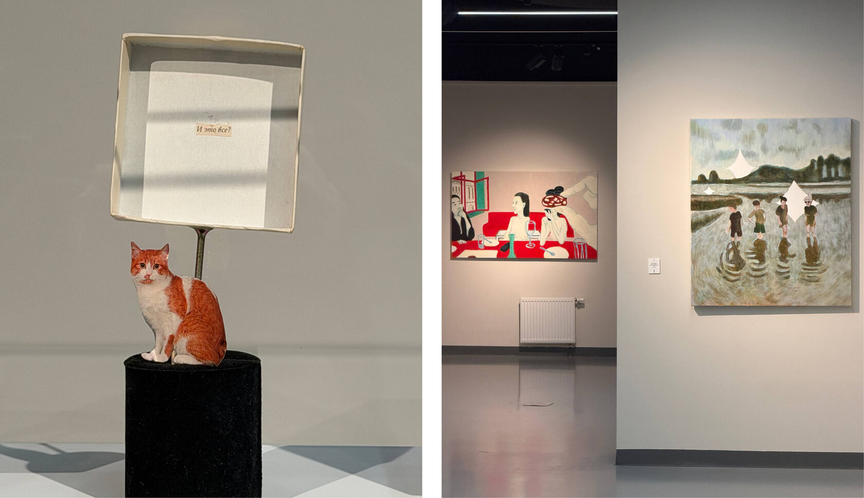 В «Синаре» продолжает работать выставка, где одновременно показывают две монографические экспозиции современных художников Алины Глазун и Петра Кирюши. Представлены объекты, коллажи, живопись и графика.