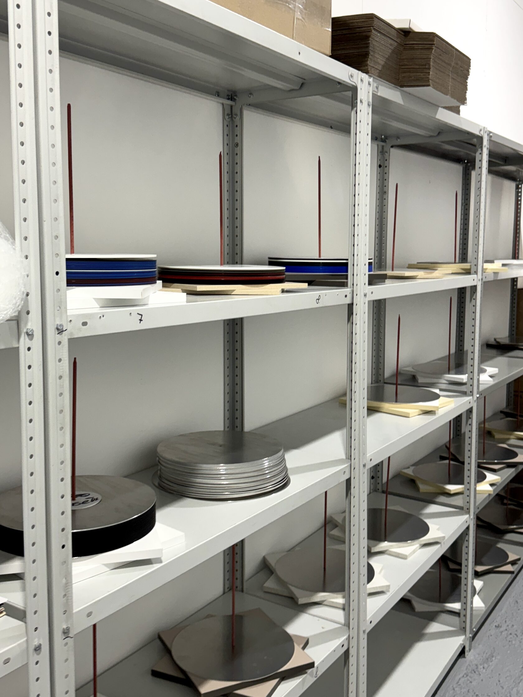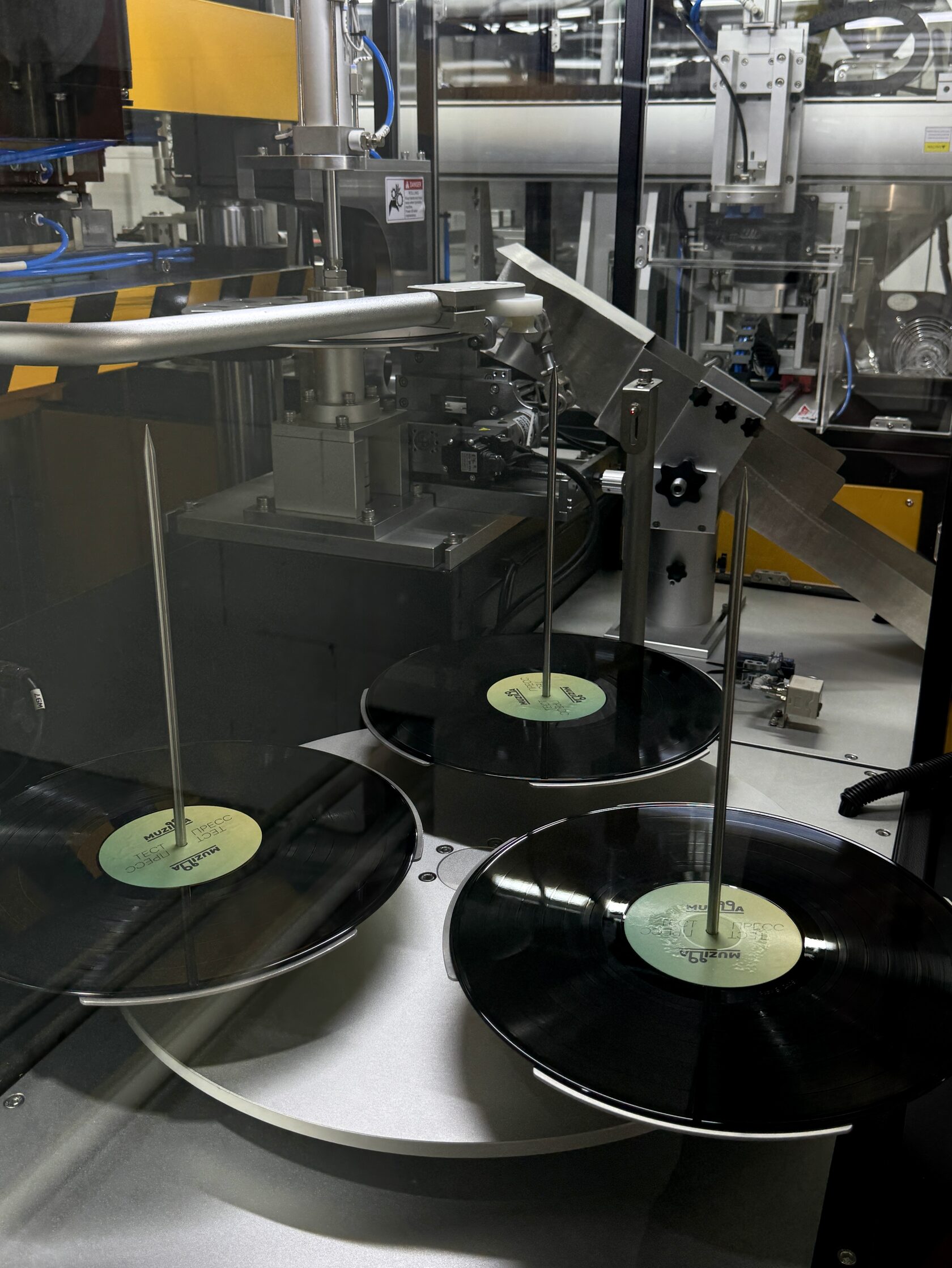 Любой тираж начинается с тест-пресса, который отправляется заказчику для утверждения. После печати пластинки проходят охлаждение (от 12 до 24 часов в зависимости от веса) и тщательную проверку на свету.