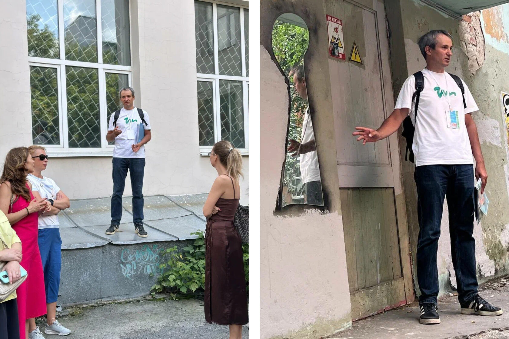 Автор телеграм-канала StreetArtEKB Александр Чудинов проводит пешеходные экскурсии по уличному искусству Екатеринбурга. Александр сам разрабатывает маршруты и делится тем, как на поверхностях стрит-арт художники доносят до горожан свои послания.