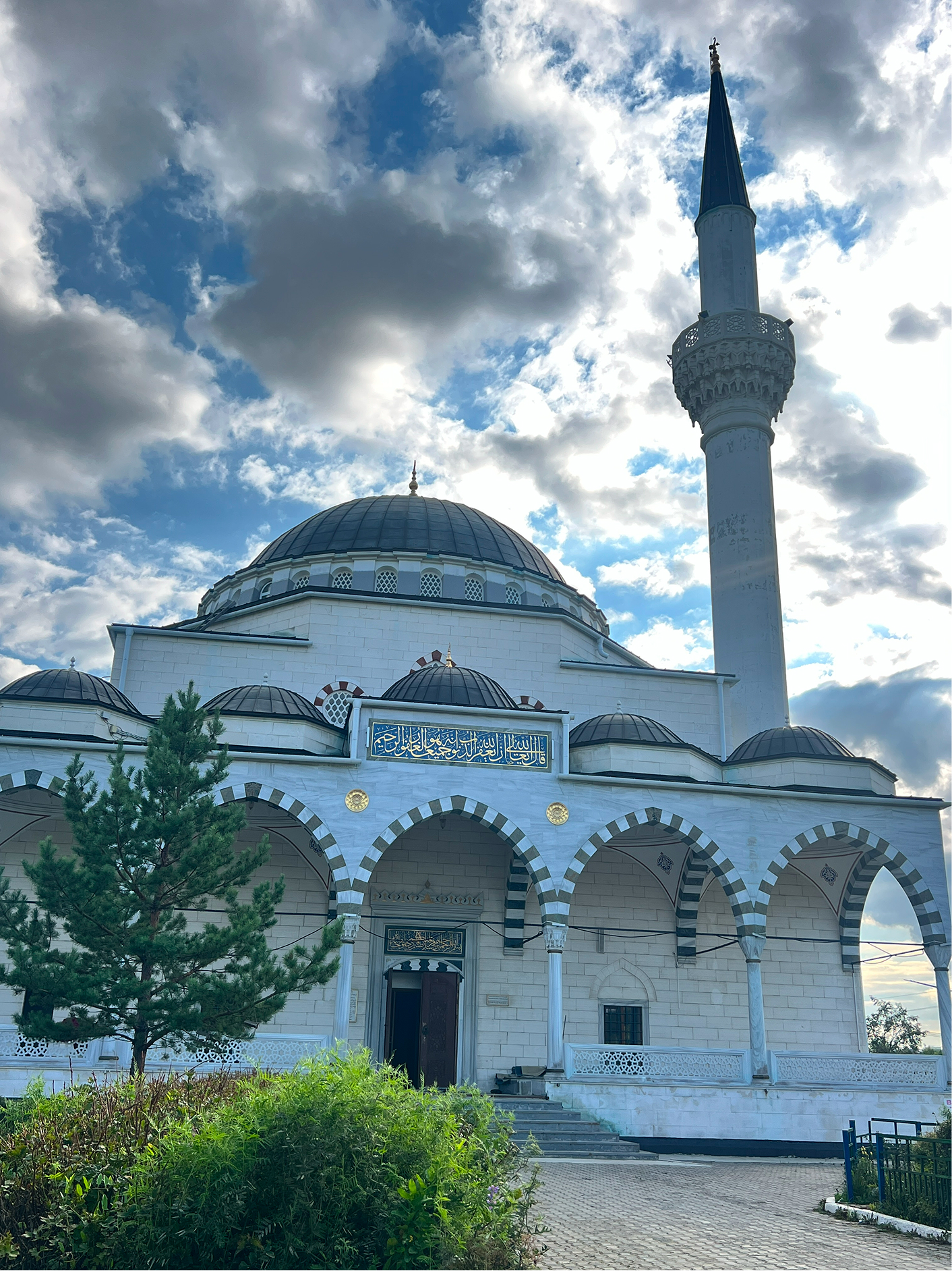 Интересна с точки зрения архитектуры. Возведена турецкими мастерами по классическим канонам Османской империи. Здание отделано белым мрамором и гранитом, купол и минарет высотой 38 метров покрыты медными пластинами.