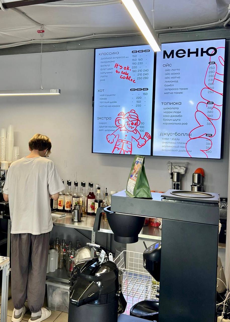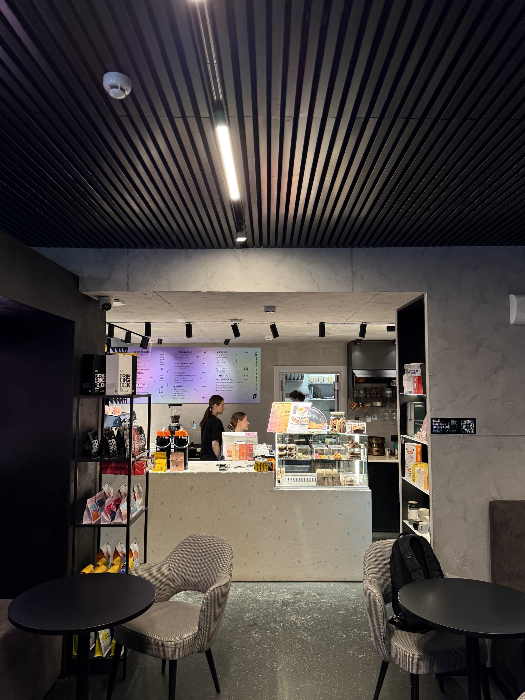 Концепция места — смесь индустриального прошлого города и минималистичной японской эстетики. В интерьере — металл, лаконичные формы и тот самый акцентный красный, который цепляет взгляд. В меню — классические кофейные холодные и горячие напитки, джус-боллы и «бабулин ти». Есть выпечка и десерты.