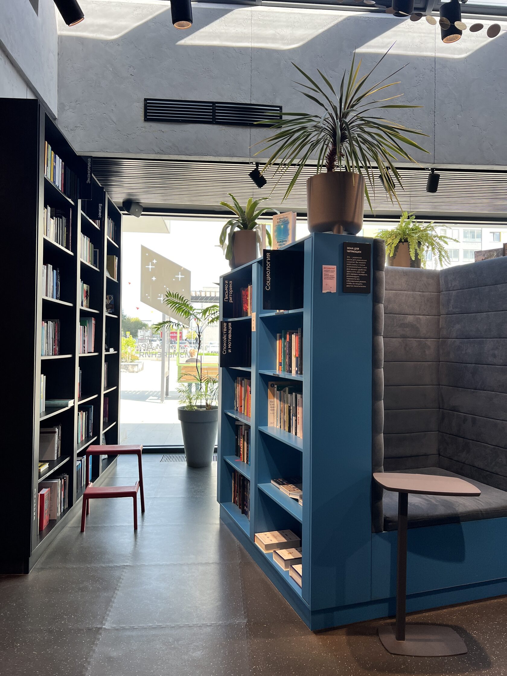 Крупнейший независимый книжный магазин Урала. Здесь нет продавцов — с посетителями общаются резиденты, каждый из которых отвечает за свой отдел и подбирает лучшие книги для читателей. В магазине есть лекторий для встреч с авторами и творческих мастер-классов, а также кофейня с уникальным меню. Интерьер объединяет книжную атмосферу и уют кафе, создавая портал в новые миры.